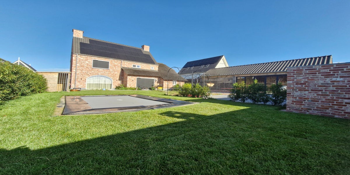 Los van het grondwerk en bestrating hebben we keerwanden geplaatst, een trampoline ingegraven, groen en beregening aangebracht en de verlichting aangelegd.